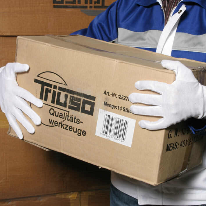 Baumwollhandschuh, 12 Paar weiß, mit Schichtel