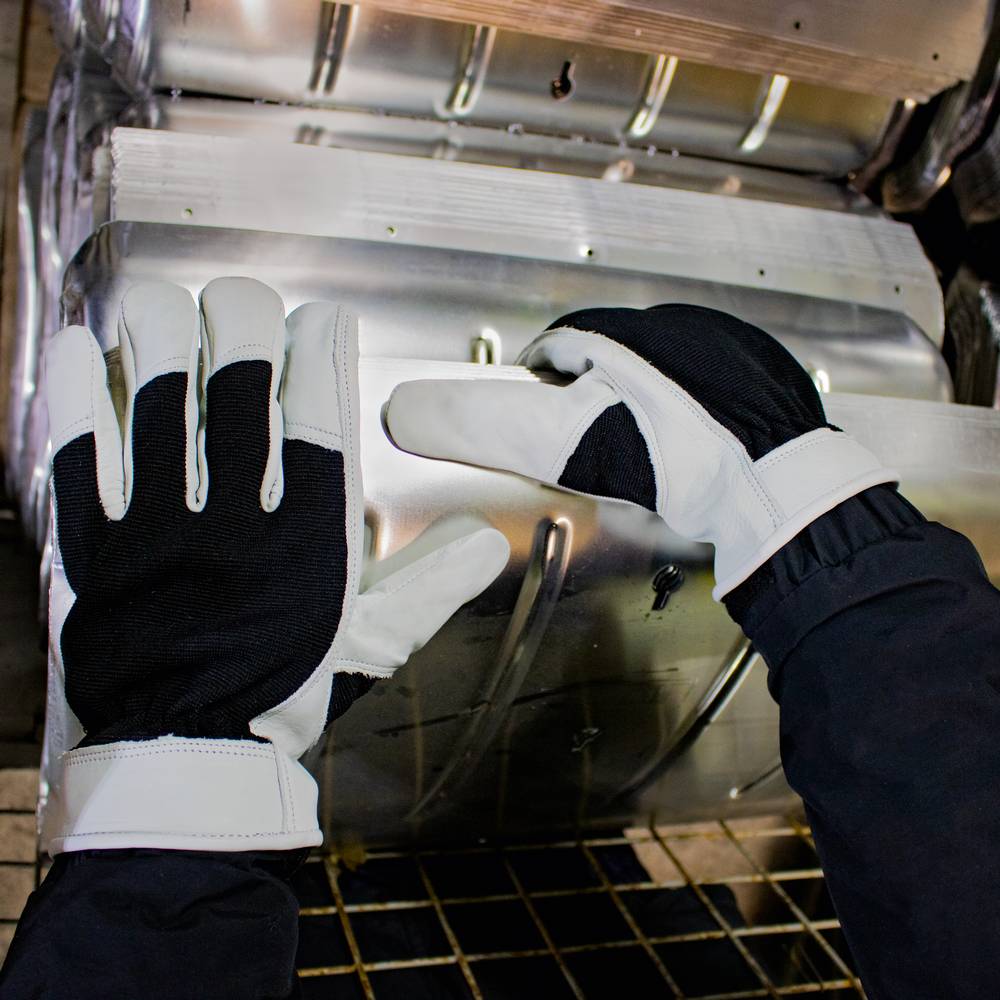 TRIUSO Premium-Line, DIN EN 420:2003 + A1:2009,mit Gummizug, stabil und wasserabweisend, abriebfest und trotzdem geschmeidig, doppelt genäht, halb gefüttert, perfekte Passform, pflanzlich gegerbt, chromfrei,Material: Leder mit Elasthan (Spandex)-Rücken,Farbe: Gewebe: schwarz Beschichtung: weiß SB-Karte, Größe 11