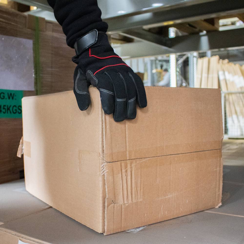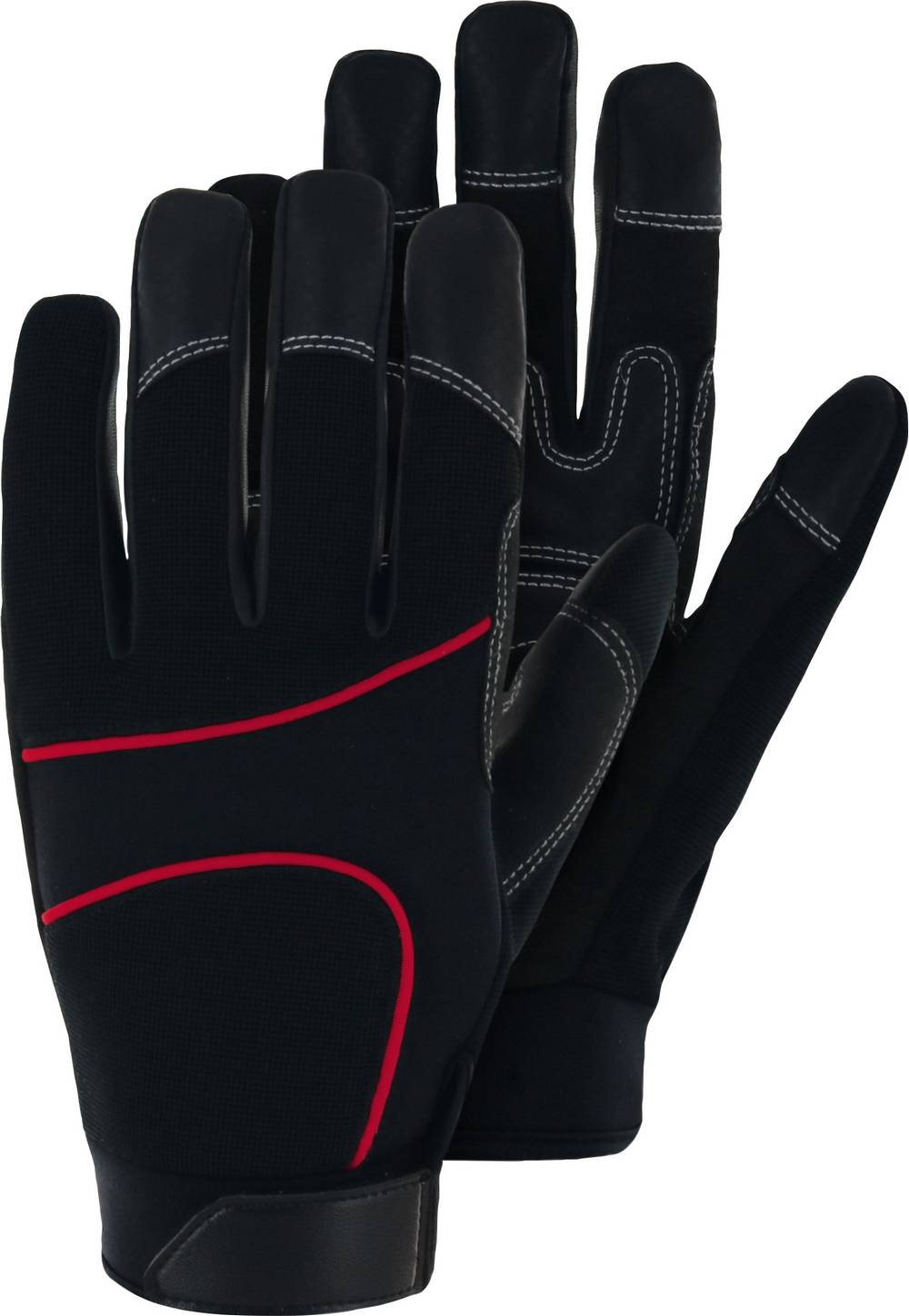TRIUSO Premium-Line, DIN EN 420:2003 + A1:2009,Klettverschluss, Knöchelschutz, verstärkte Innenhand, atmungsaktiv, perfekte Passform, elastischer Handrücken, sehr gute Abriebfestigkeit, hohe Weiterreißfestigkeit,Material: Synthetikleder,Farbe: Schwarz/Rot SB-Karte, Größe 9