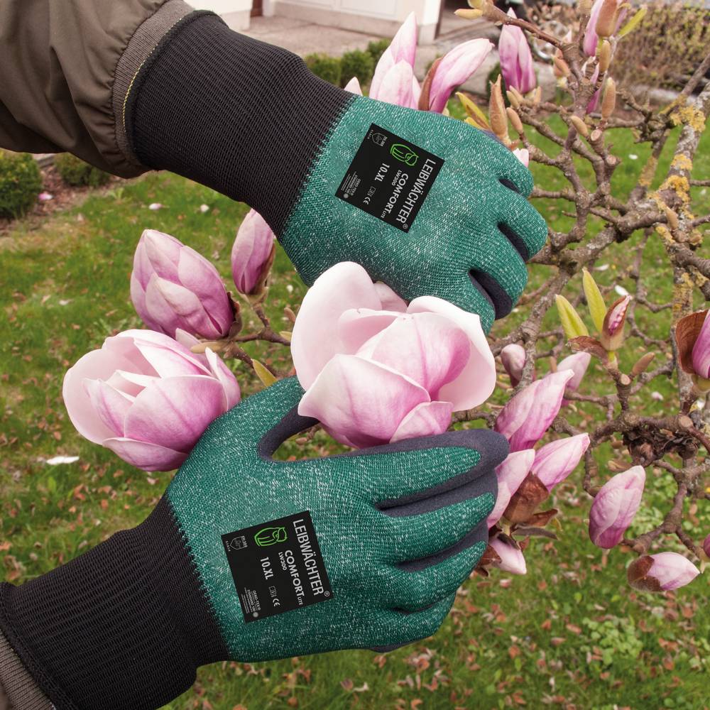 Leibwächter, DIN EN 388:2016 Cat II (2.1.3.1.X),DIN EN 420:2003 + A1:2009,atmungsaktiv, nahtloses Strickgewebe, keine Latexproteine, hervoragende Beständigkeit, gegen Öl, Fett und Kohlenwasserstoff, hohe Abriebfestigkeit, die einmal getauchte Latex-Beschichtung kombiniert mit Nylon und Polyester sorgen für einen unvergleichlichen Griff, der die Handermüdung reduziert, er wurde vor allem für präzise Arbeiten in trockener und nasser Umgebung konzipiert,Material: Nylon- und Polyester-Gewebe mit Latex-Mikroschaum-Beschichtung,Farbe: Gewebe: grün meliert Beschichtung: schwarz NEU, SB-Karte, Größe 11