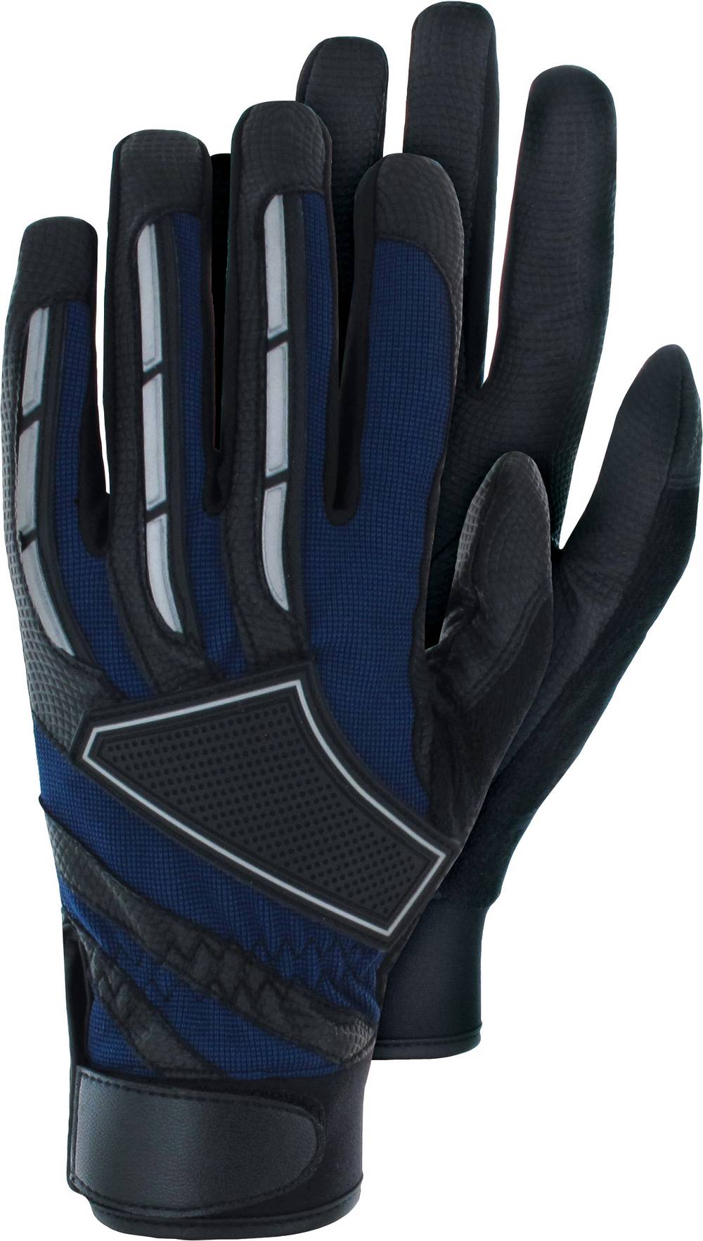 TRIUSO Premium-Line, DIN EN 420:2003 + A1:2009,mit Klettverschluss, elastischer Handrücken mit dynamisch angeordneten Protektoren, gute Griffigkeit, Neopren-Bündchen mit flexiblem Bundabschluss,Material: PU-Gewebe mit Synthetikleder,Farbe: Blau/Schwarz SB-Karte, Größe 9