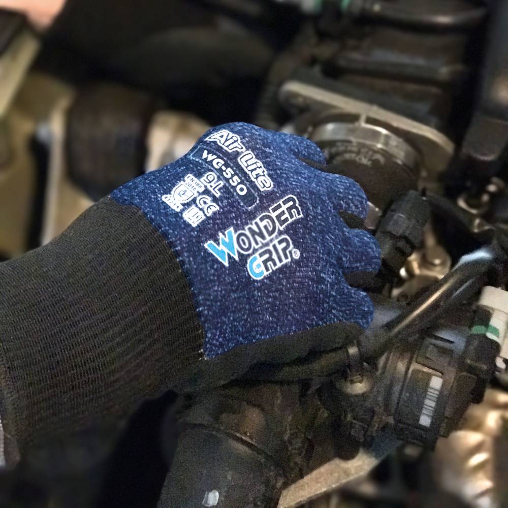 Wondergrip, DIN EN388:2016 Cat II (4.1.3.1.X), atmungsaktiv, nahtloses Strickgewebe, keine Latexproteine, hervoragende Beständigkeit, gegen Öl, Fett und Kohlenwasserstoff, hohe Abriebfestigkeit, einmal getauchte Nitril-Schaum-Beschichtung kombiniert mit Nylon und Polyester sorgen für einen rundherum atmungsaktiven Handschuh, der vor allem für präzise Arbeiten in trockener Umgebung konzipiert wurde. Material: Nylon- und Polyester-Gewebe mit Nitril-Schaum-Beschichtung, Farbe: blau meliert Auslaufartikel, Polybeutel, Größe 7 / S