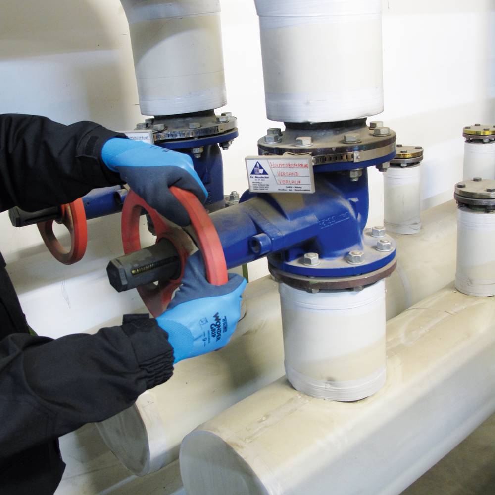 WONDERGRIP, DIN EN 388:2016 Cat II (3.1.4.1.X), Food certification European regulation EC 1935/2004, EXTRA GRIP, 2-fach getaucht, für nasse Einsatzgebiete, wasserdicht, sehr flexibel und elastisch, gute Griffigkeit, hohe Abriebfestigkeit, Schutz vor schwachen Säuren, Ätzmitteln, Alkoholen, Reinigungsmitteln sowie Viren und Bakterien, dank der Zertifizierung im Umgang mit Lebensmitteln perfekt für Arbeiten in der Lebensmittelindustrie geeignet. Material: Nylon-Gewebe mit wasserdichter Latex-Beschichtung und 2-facher Latex-Mikroschaum-Beschichtung, Farbe: blau Auslaufartikel, SB-Karte, Größe 7 / S