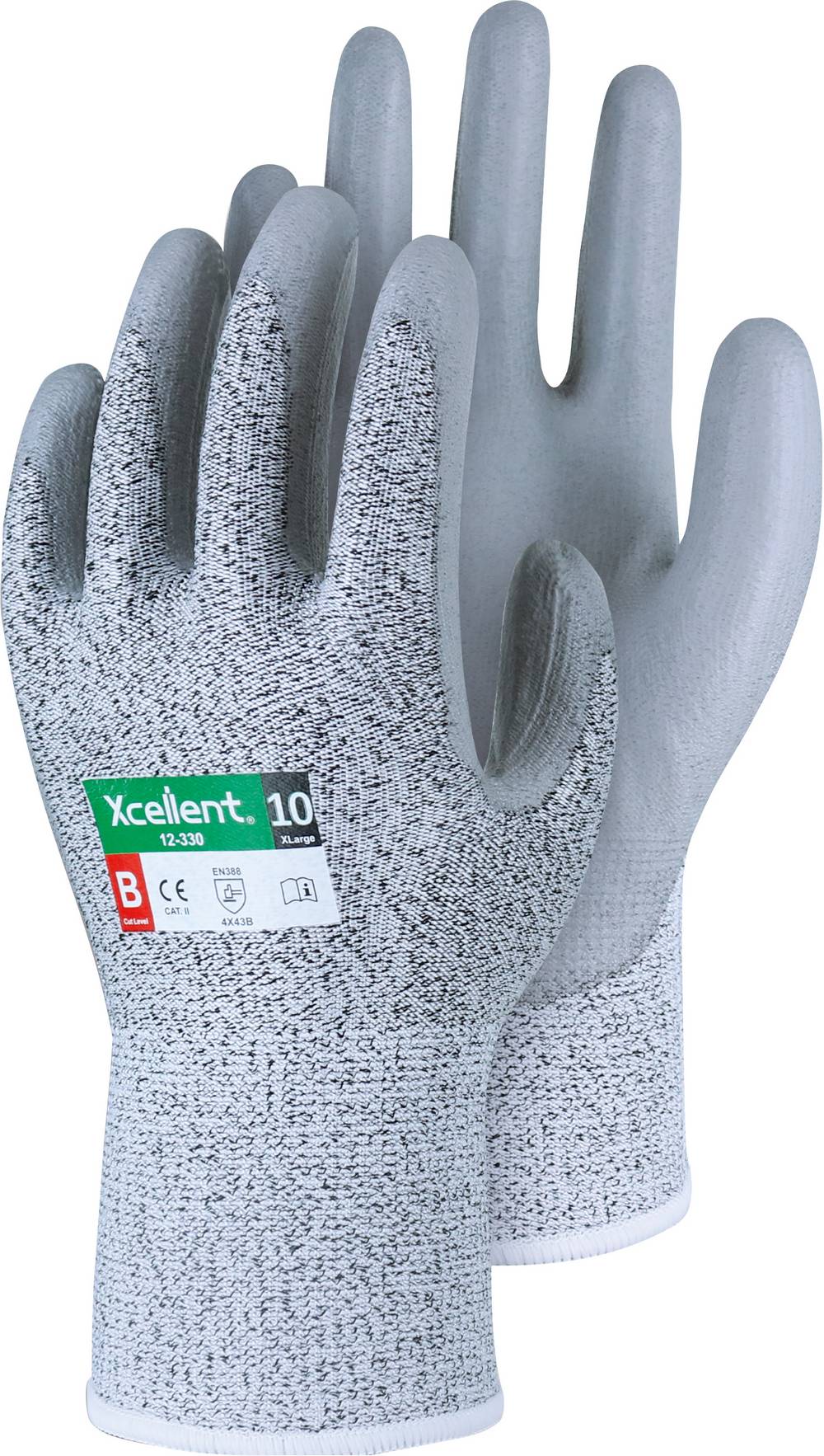 Xcellent, DIN EN 388:2016 Cat II (4.X.4.3.B),Schnittschutzklasse B, bessere Griffigkeit durch X-Wet als andere PU-Produkte, gute Flexibilität und Geschicklichkeit, perfekte Passform, Anwendungsbereiche: allg. Arbeiten in trockener Umgebung, Montage,Material: UHMWPE-Gewebe mit X-Wet PU-Beschichtung,Farbe: Gewebe: grau meliert, Beschichtung: grau NEU, Polybeutel, Größe 11