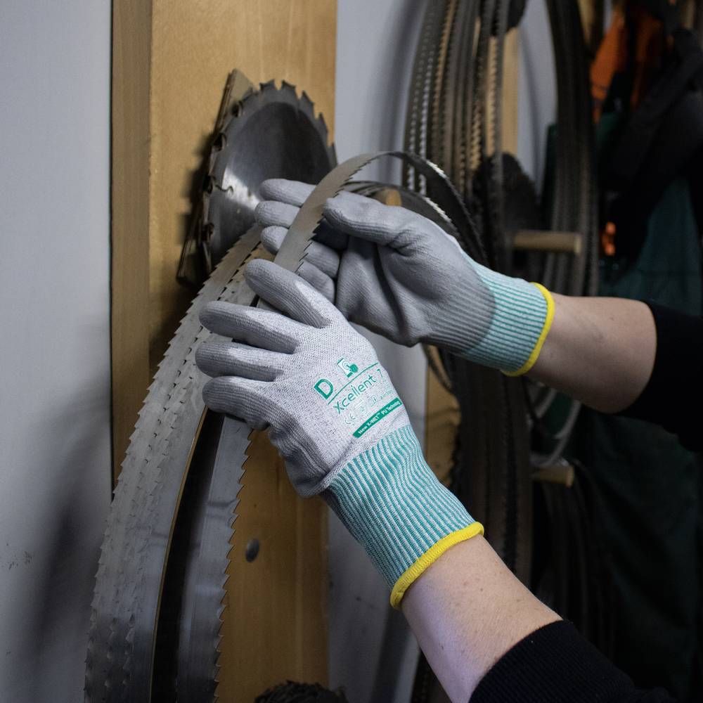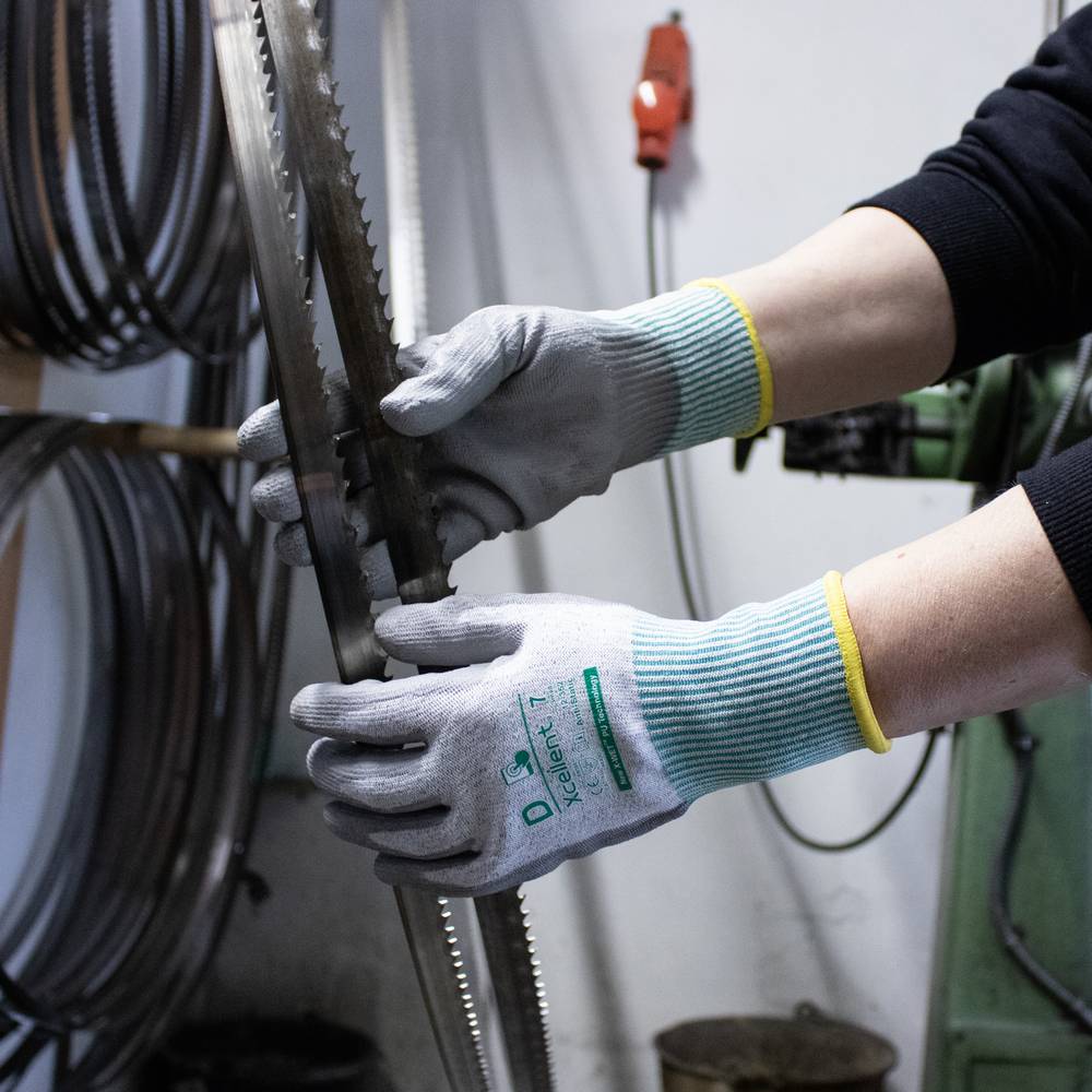 Xcellent, DIN EN 388:2016 Cat II (4.X.4.3.D), DIN EN 1149, Schnittschutzklasse D, bessere Griffigkeit durch X-Wet als andere PU-Produkte, gute Flexibilität und Geschicklichkeit, gute Passform, Anwendungsbereiche: allg. Arbeiten in trockener Umgebung, Montage, nspektion, Metall- und Automobilindustrie,Material: Strick aus schnittfesten Spezialgarnen mit X-Wet PU-Beschichtung,Farbe: Gewebe: grau-grün meliert, Beschichtung: grau NEU, Polybeutel, Größe 7