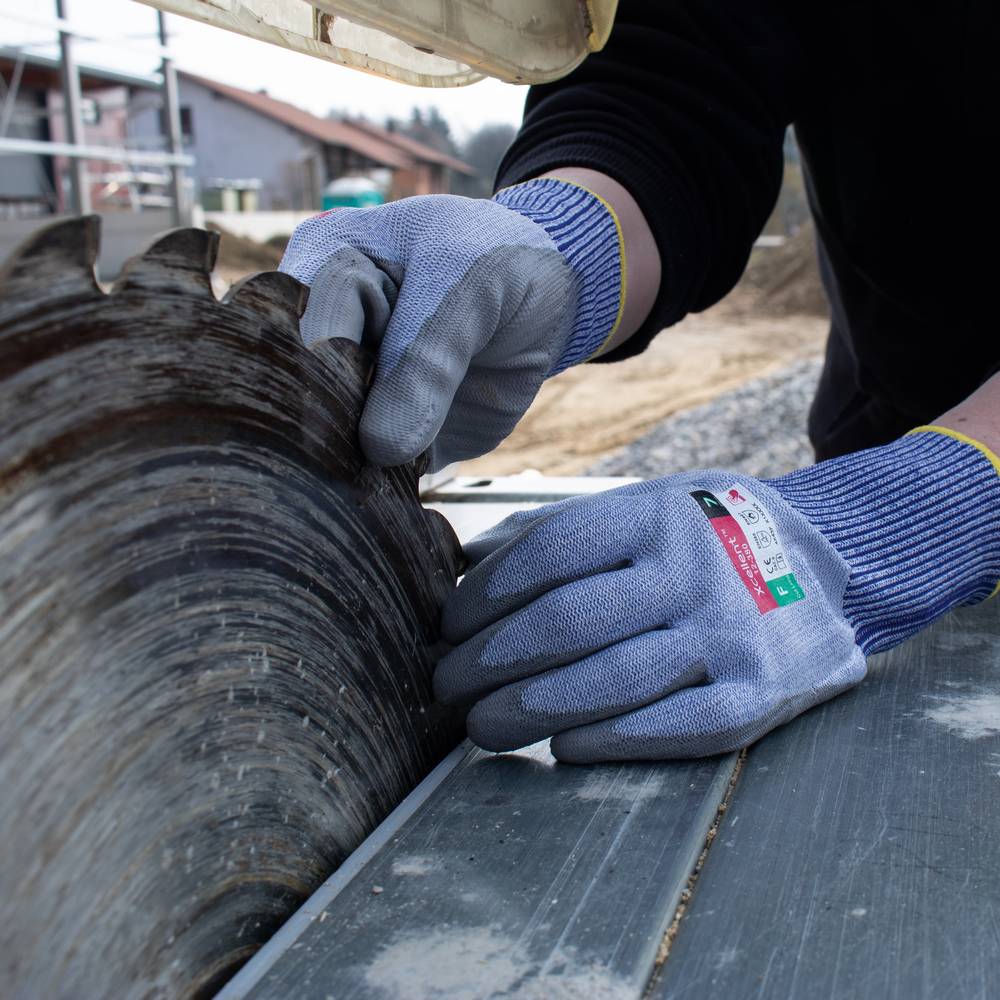 Xcellent, DIN EN 388:2016 Cat II (4.X.4.3.F), DIN EN 407 (X.1.X.X.X.X),extrem hohe Schnittschutzklasse F, Kontakt-Hitzeschutz bis zu 100°C, bessere Griffigkeit durch X-Wet als andere PU-Produkte, gute Flexibilität, gute Passform, Anwendungsbereiche: allg. Arbeiten in trockener Umgebung mit hoher Schnittgefahr, Metall-, Papier- sowie Glasindustrie, Automobilindustrie,Material: Stahlfaser-UHMWPE-Gewebe mit X-Wet PU-BeschichtungFarbe: Gewebe: grau-blau meliert, Beschichtung: grau NEU, Polybeutel, Größe 8