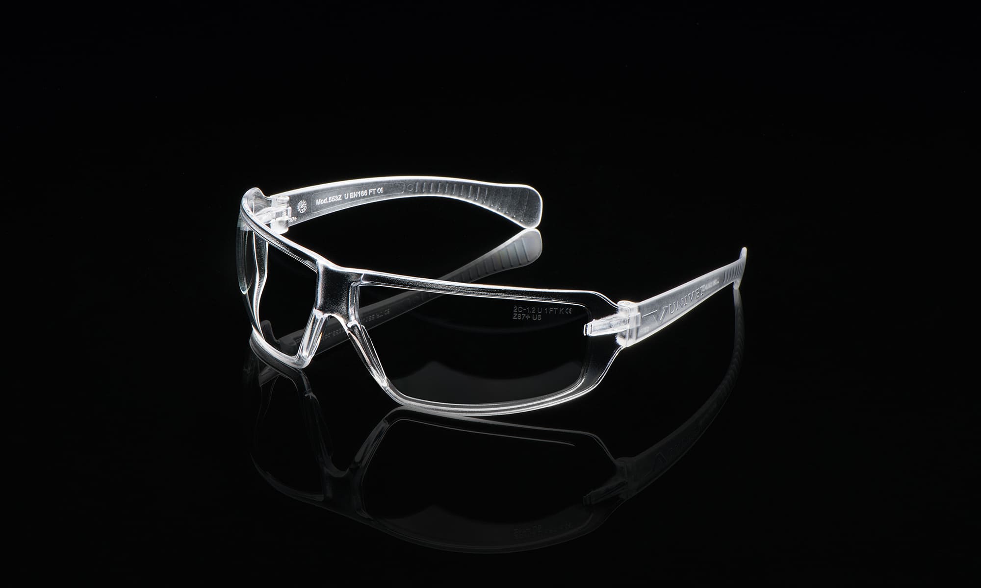 UNIVET, DIN EN 166, Zwei-Komponenten Nasensteg für Komfort ohne Druck, ansprechende und ergonomische Linienführung, die sich allen Benutzern anpasst, SOFTPAD - exklusive Endstücke für perfekten, ergonomische Sitz und stabilen Tragekomfort, einstellbare Bügel in Länge und Neigung, Anti-Beschlag Beschichtung Plus, Anti-Kratz-Beschichtung Plus. Fassung: gun metallic/grün, Gläser: klar, Sichtscheibe: 2C 1.2 U 1 FT K N, Gewicht: 26 g