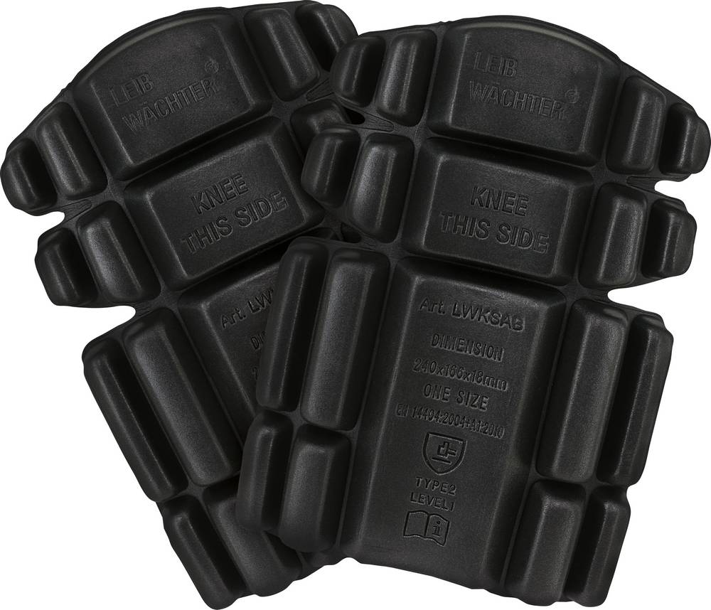 Leibwächter, DIN EN 14404:2004+A1:2010 Typ 1, Level 2, entspricht den Anforderungen der EU Verordnung 2016-425,Wabenpolster-Knieschoner zum Einschieben in die Knietaschen der Leibwächter Arbeitshosen, superleicht, ergonomisch geformtMaterial: 100% Ethylenvinylacetat (Sandwich HE + EVA + HE)Abmessungen: 240 x 166 x 18 mm, Gewicht: ca. 44 g, Farbe: schwarzLeistungsstufe: 1 - durchstichfest bis 100 Nm NEU,