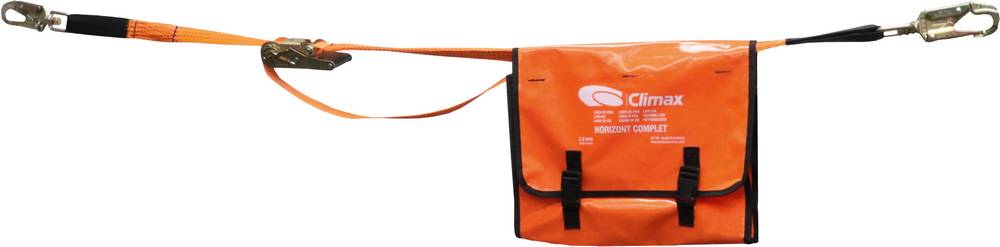 Norm DIN EN 795 Klasse B Horizontales-Set, drehbare Endverbinder - für einfaches Abwickeln, kann für max. 2 Personen genutzt werden, inkl. Tasche für saubere Lagerung und Transport. 2 Bänder: 35 mm, Polyester, Länge: max. 20 m