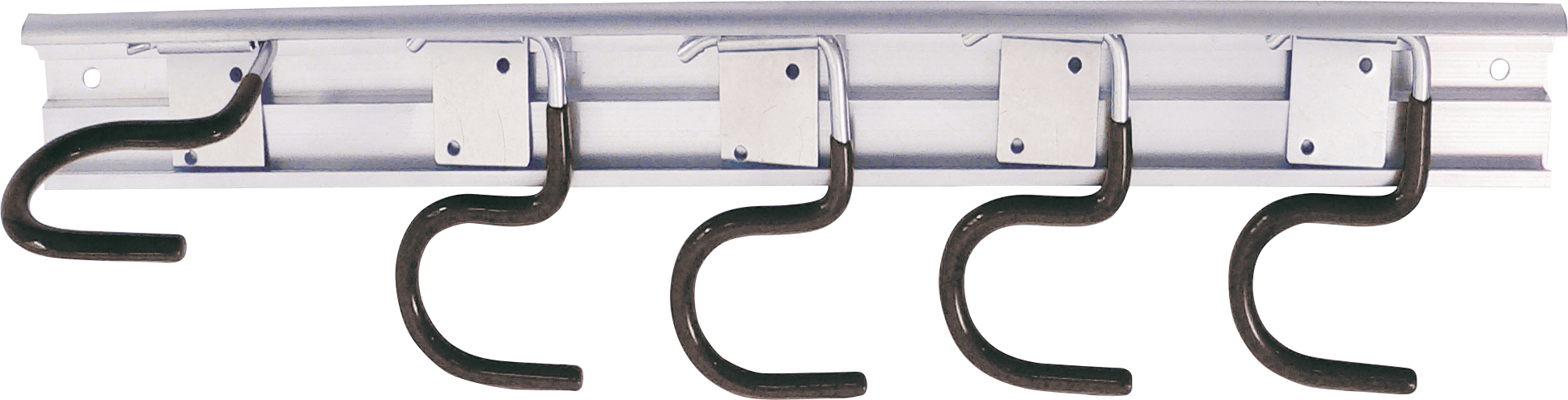 für leichtes Verstauen Ihrer Gartengeräte, 400 mm Alu-Schiene mit 5 Haken, komplett mit Schrauben, verzinkte Haken mit Kunststoff-Überzug, um keine Schäden an Ihrem Werkzeug zu verursachen, für ø bis 36 mm 400 mm
