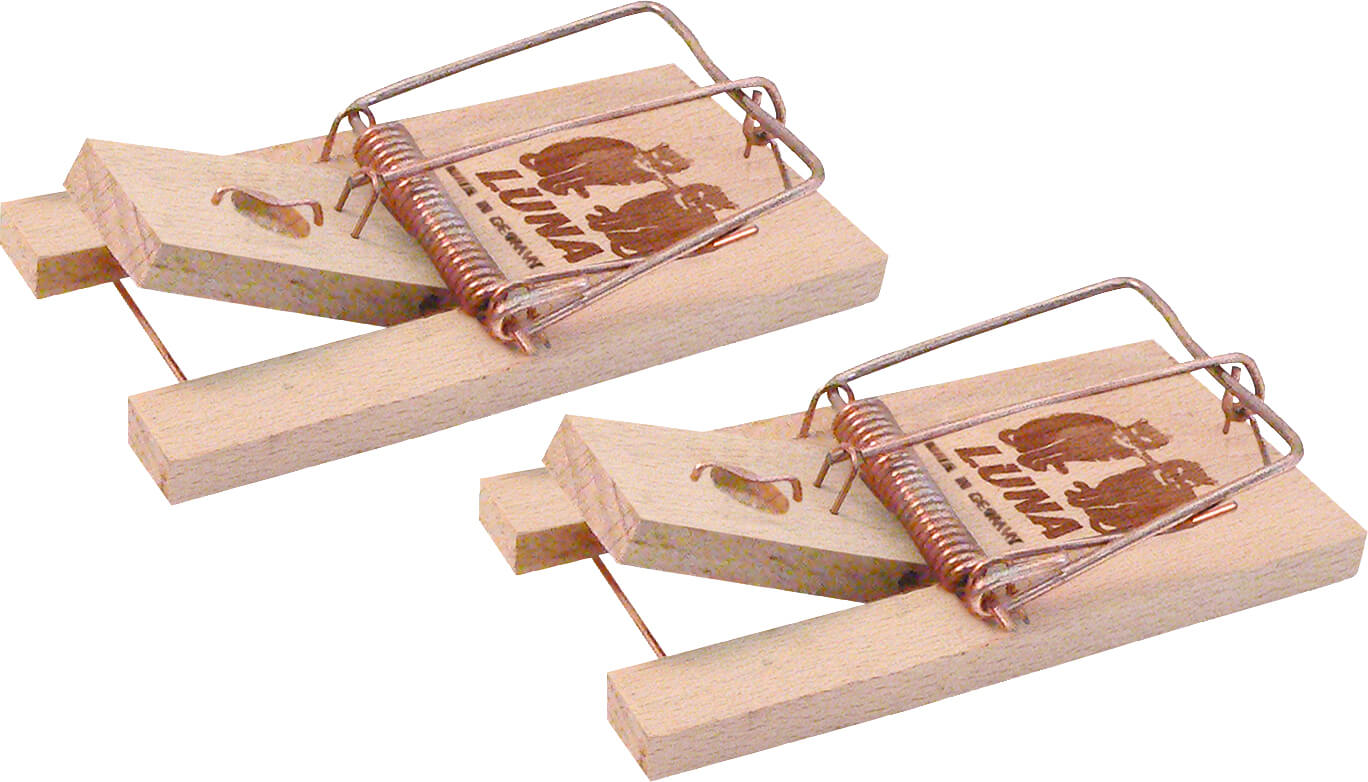 Mausefallen "LUNA" 2x auf K. Buche,Holzwippe und Köderbügel