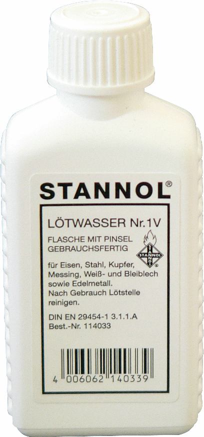 "STANNOL Loetwasser Nr. 1V nach EN?294541.3.1.1C Flussmittel zum Weichloeten von Eisen Stahl Kupfer Messing sowie fuer allgemeine Loetarbeiten (enthaelt Zinkchlorid reizend) 50 ml PEFlasche mit Pinsel