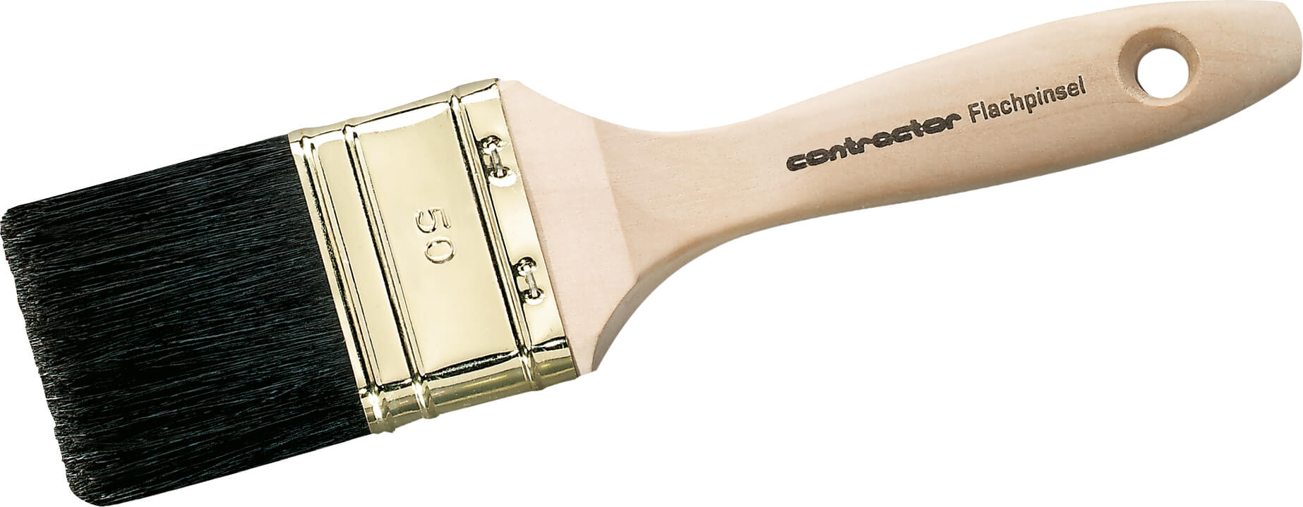 12. Stärke, Premium-Qualität für den Profi, guter Farbaustausch, sehr gute Verschlichtung, leichte Reinigung, universell einsetzbar, - schwarze Chinaborste, Materialbasis: Naturborste, 90% Tops, - roher Hartholzstiel, - Zwinge - vermessingtes Blech 30 x 18 mm / 44 mm
