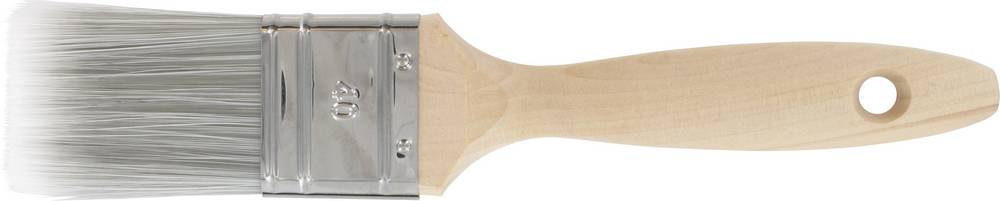 Triuso Premium-Line, 9. Stärke, gemeinsam mit der Farbindustrie entwickelt, bombiert, für alle Anstricharten geeignet, hoher Farbauftrag zur Erzeugung der notwendigen Schichtdicke bei WV-Lacken, sehr feine Oberflächenverschlichtung, hohe Stabilität an der Filamente und gutes Rückstellverhalten, - grau-weiße High-Tech Universalborste (kx3 PBT-PET-Borstenmix - 70% Kunststoff / 30% Naturborsten), - naturbelassener Holzstiel - rostbeständige Zwinge 50 x 17 mm / 63 mm