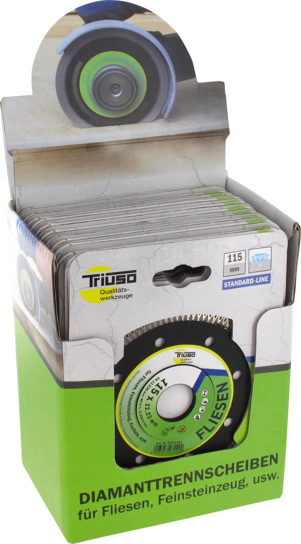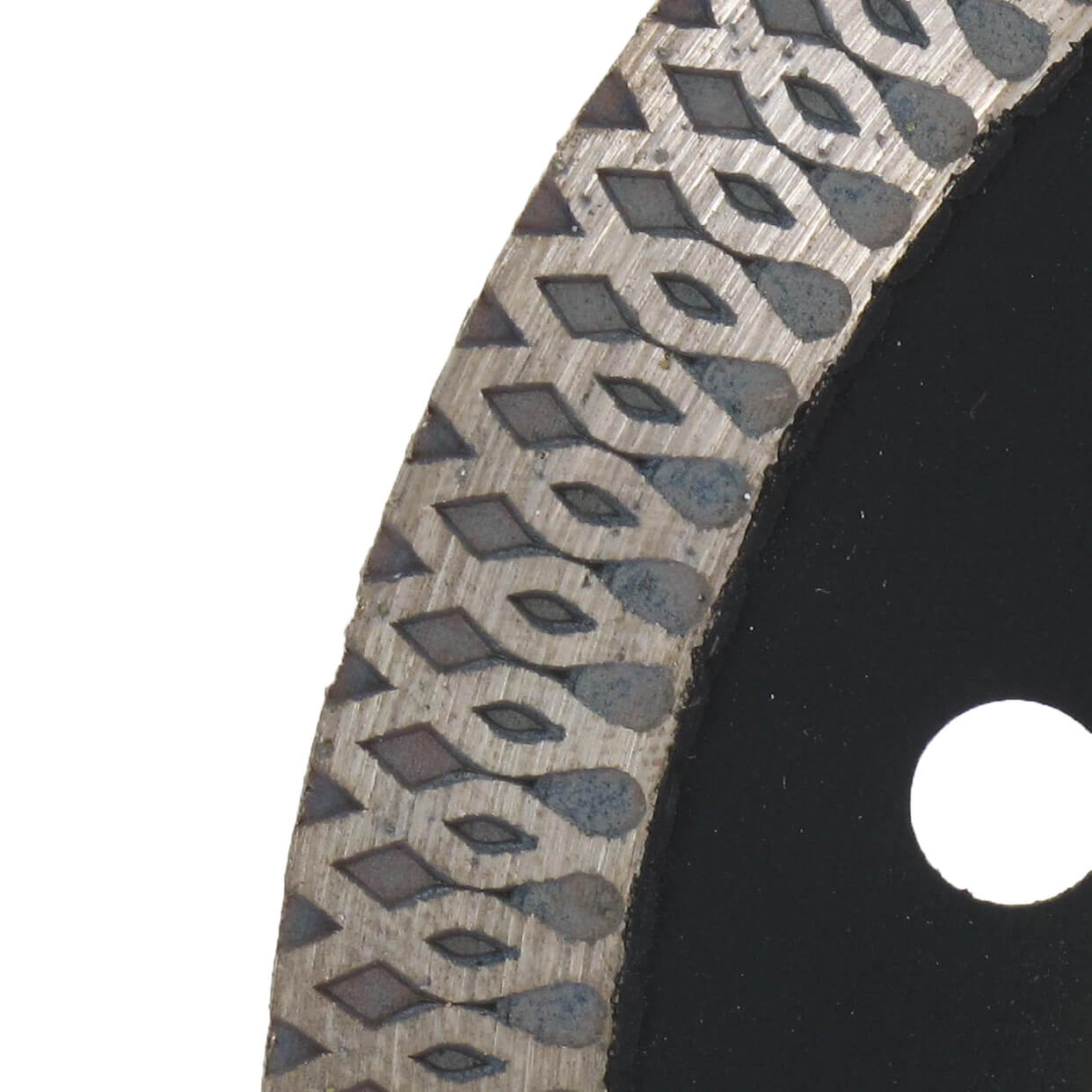 für Fliesen, Kacheln, Feinsteinzeug. Turbo Spezialgeometrie für feine Schnitte, glatte Schnittkanten, verstärkter Kern, - Flansch minimiert die Vibration, - 10 mm Segmenthöhe, Einsatzbereiche: Fliesen, Feinsteinzeug, Kacheln, Keramik, Mamor, usw. ø 115 x 1,2 mm
