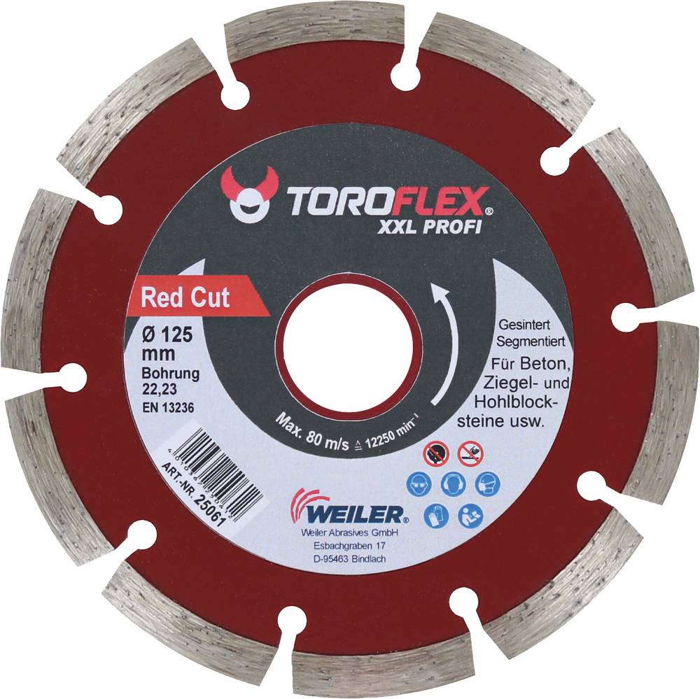 toroflex, Standardscheibe mit hoher Schnittleistung, segmentierter Schneiderand, gesintert, Hauptanwendung: Beton, Betondachpfannen, mittelharte Steine, Segmenthöhe 8 mm, Innen-ø 22,2 mm, ø 230 x 2,5 mm