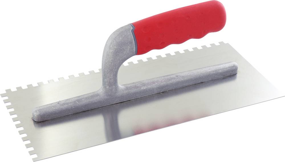 TRIUSO Premium-Line, Blatt aus Edelstahl, Blattstärke 0,7 mm, die extra lange Griffauflage gibt dem Blatt mehr Stabilität und verhindert effektiv ein Verformen des Blattes, ergonomischer Griff aus Spezialkautschuk, mit 6 Befestigungsbolzen Rechteckzahnung, 6 mm, 130 x 280 mm