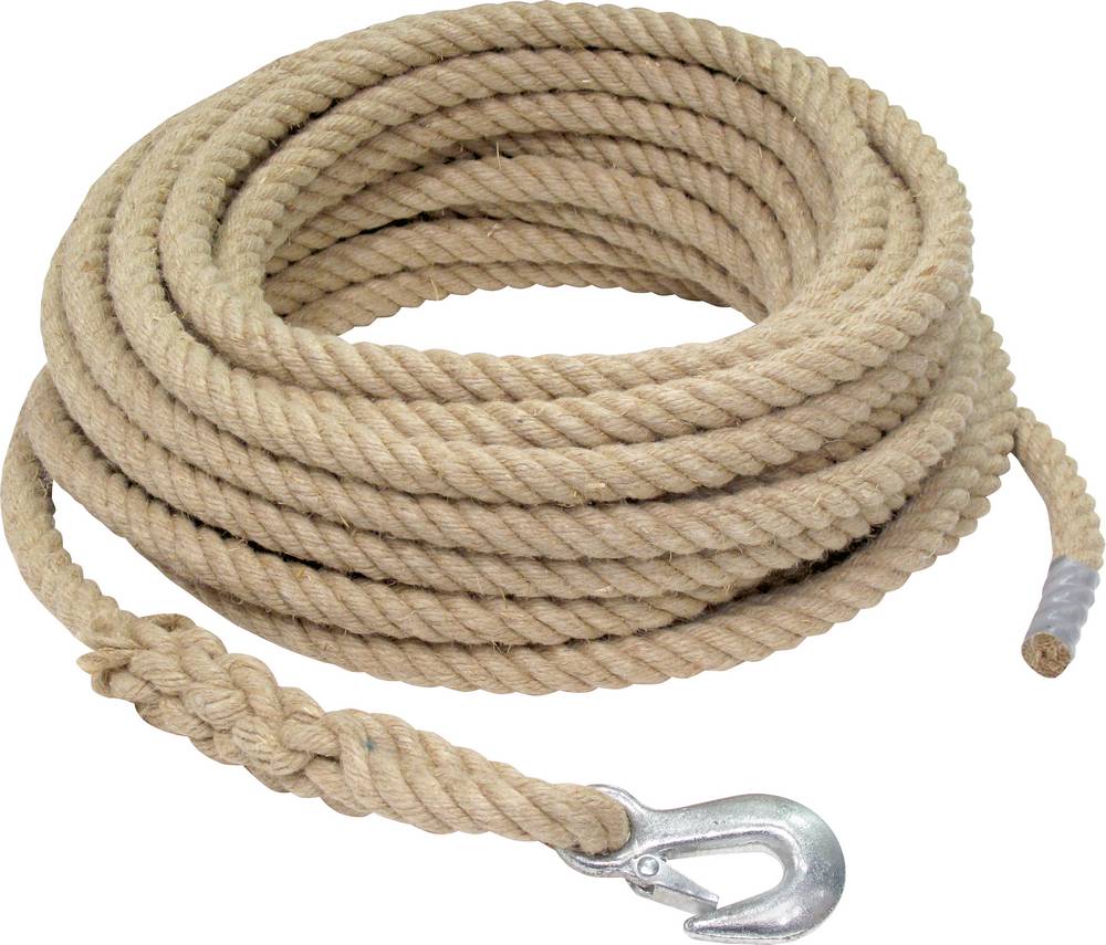 Baurollenseil 20 m, Hanf, mit SIKA-Haken, 20mm Durchmesser