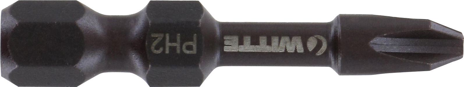 Witte, Professionelle Akkuschlagschrauber werden immer leistungsstärker und erfordern spezielle Bits. Der WITTE MAXX Impact Bit wurde speziell für das Arbeiten mit diesen Maschinen entwickelt. Deutlich erhöhte Standzeiten gegenüber herkömmlichen Bits werden erreicht durch: - individuelle Torsionsform, - besonders elastisches Material, - spezielle Vergütung, Die kompakte Bauform mit einer Länge von 38 mm ermöglicht: - den direkten Einsatz im Schlagschrauber ohne Bithalter, - eine Kombination von optimal integriertem Torsionsbereich und kontrollierter Handhabung der Maschine in Schraubennähe Phillips, PH1
