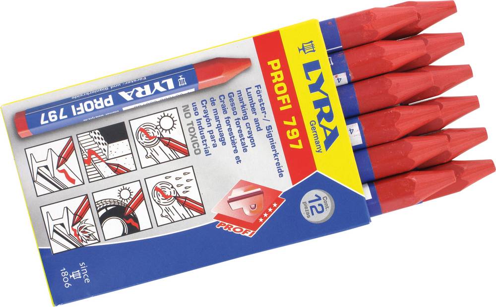 LYRA, Nr. 797, auf Ölbasis für professionelle Anwendungen, bestens geeignet für alle Holzarten, trocken oder nass, extrem hohe Pigmentierung, beste Rohstoffe, etikettiert gegen verschmutzte Finger, hohe Bruchfestigkeit, 12 Stück im Karton rot