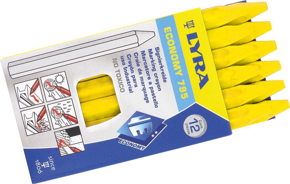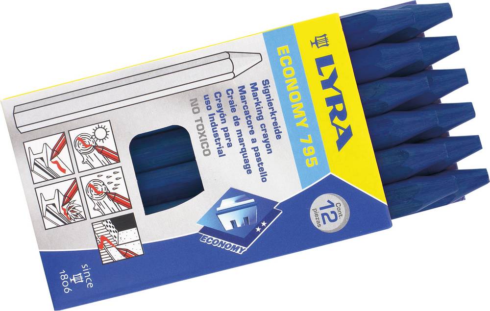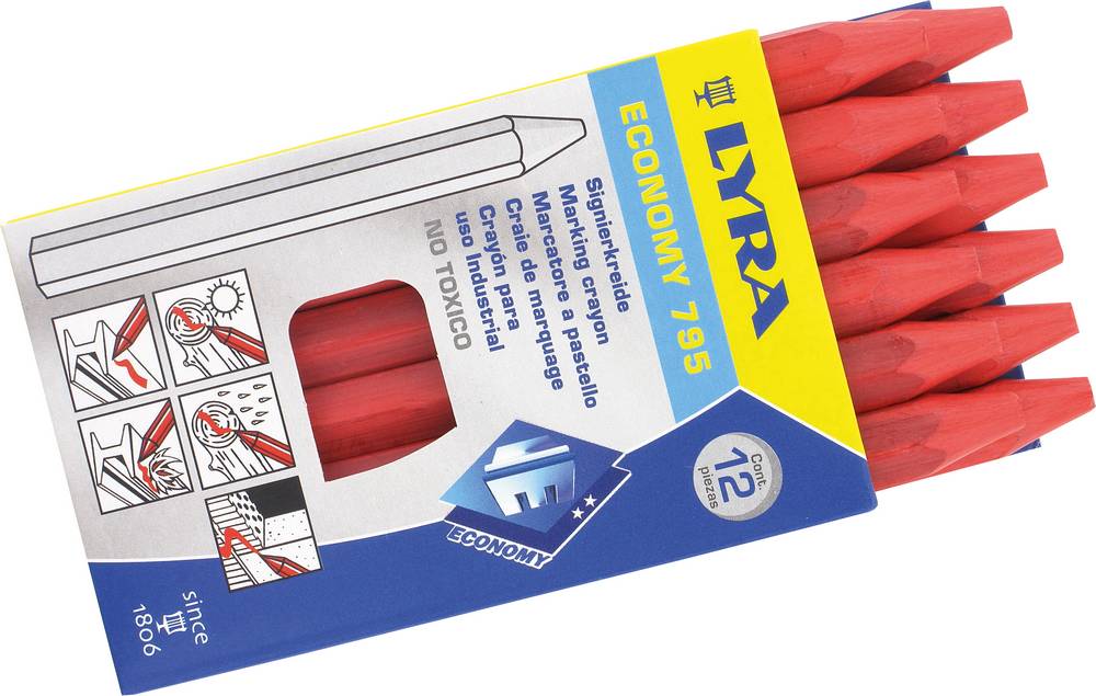 LYRA, Nr. 795, Signierkreide ECONOMY auf Ölbasis, geeignet für diverse Anwendungen, gespitzt, 120 x 11 mm, unpapiert, 12 Stück im Karton, nicht für Fliesen rot