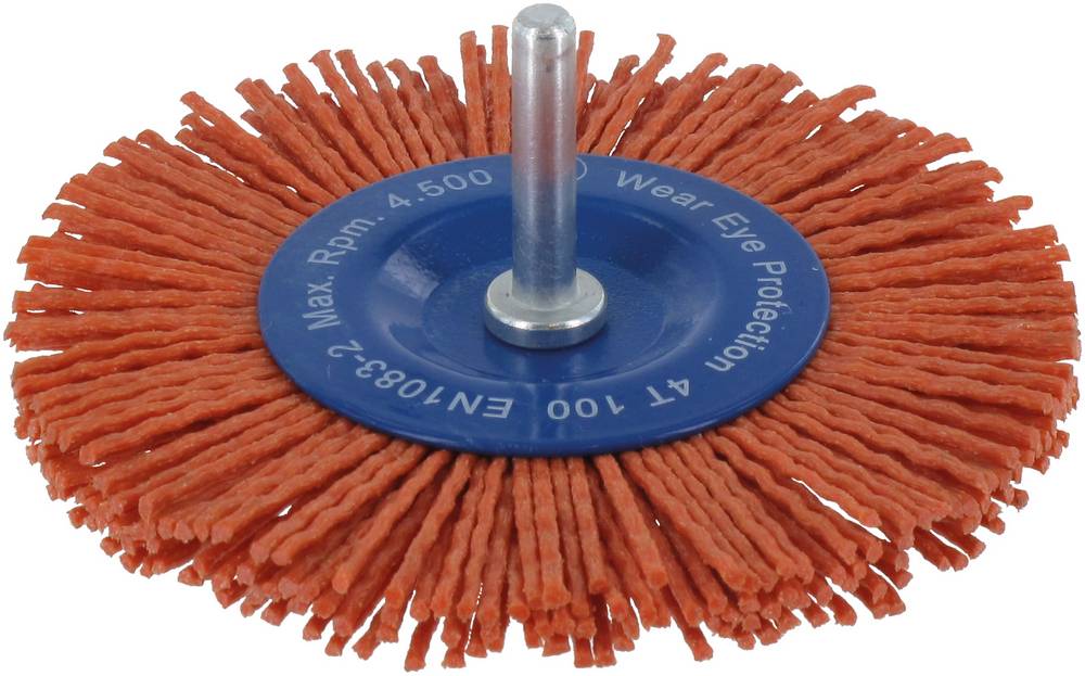 6 mm-Schaft für Bohrmaschine, 1,20 Nylon / K80, einreihig, 10 Stück lose im Display ø 100 mm x 8 mm