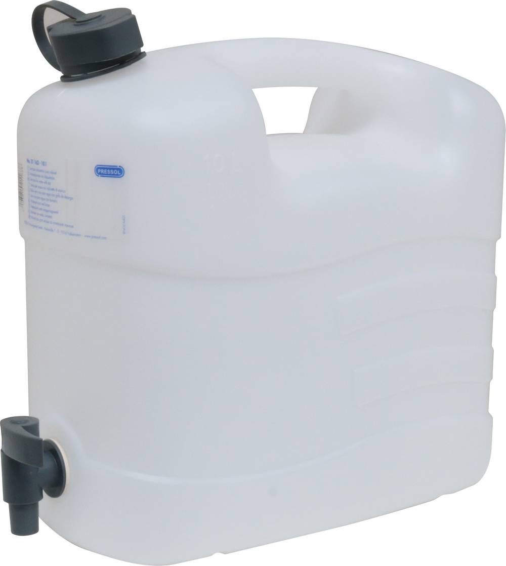 PRESSOL, mit Ablasshahn, zerlegbar, einfach zu reinigen, Verschlusskappe mit Fixierband gegen Verlust gesichert, lebensmittelecht, robust und unempfindlich gegen Schlageinwirkung, Material Kanister und Ablasshahn: HDPE, Material Verschlusskappe: Polypropylen, Material Fixierband: LDPE, 10 l: 348 x 174 mm, Höhe 319 mm, 15 l: 352 x 175 mm, Höhe 418 mm, 20 l: 416 x 203 mm, Höhe 408 mm, 35 l: 415 x 248 mm, Höhe 537 mm 15 l