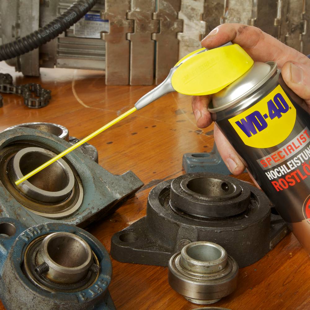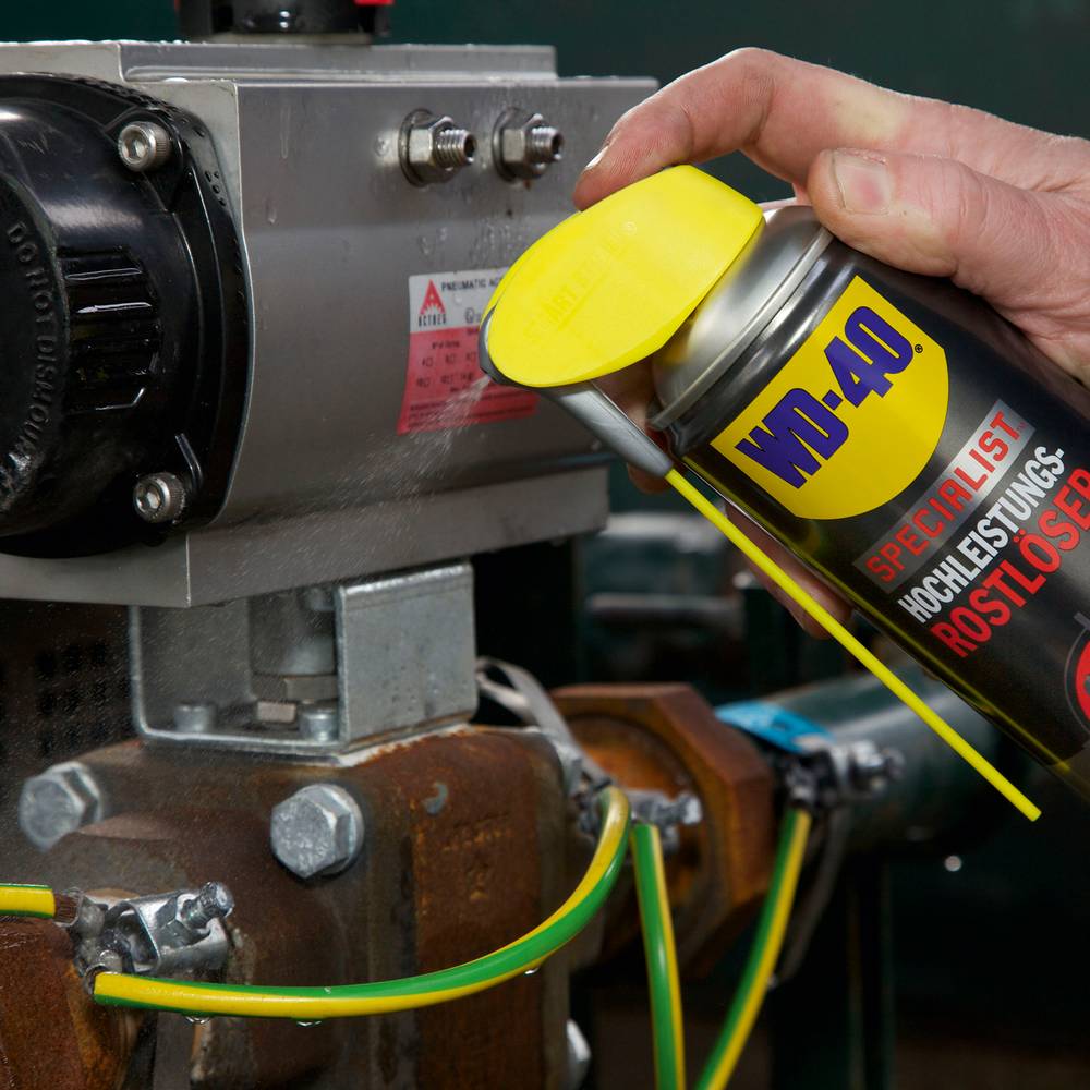 WD-40, Mit dem Hochleistungs-Rostlöser haben festsitzende Muttern oder Teile keine Chance. Alles löst sich schnell und ist dank der stark Wasser abweisenden Wirkung des Hochleistungs-Rostlösers vor weiterer Korrosion geschützt. Ihre Vorteile: schnelle Durchdringung verrosteter und korrodierter Teile, löst festgefressene Verbindungen, geeignet für Metalle, Legierungen, Gummi, Kunststoffe, wirkt zwischen -20° C und +90° C, Ideal z. Bsp. für: Muttern, Schlösser, Ketten, Lager, Werkzeug und vieles mehr. Exakt dosierbar mit dem WD-40 Smart Straw™ Auslaufartikel, 400 ml