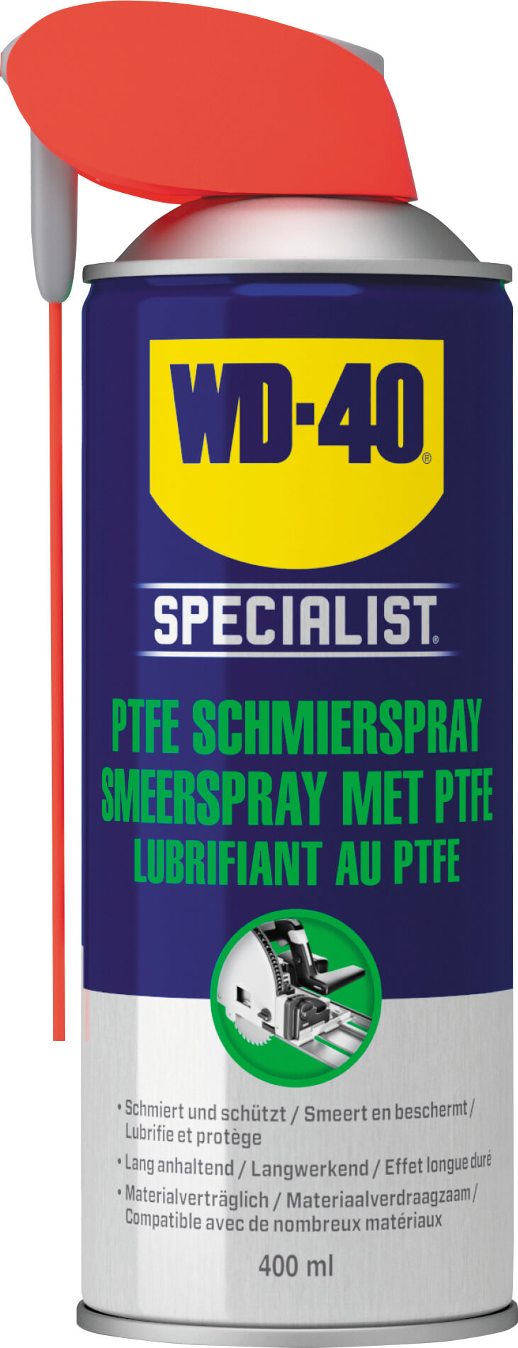 WD-40, Einwandfrei funktionierende Werkzeuge und Geräte sind entscheidend für jede Arbeit. Für verbesserte Pflege sorgt jetzt das neue Hochleistungs-PTFE Schmierspray mit dem reibungsreduzierenden Festschmierstoff PTFE. Durch einen feinen, öligen Schmierfilm wird der Verschleiß reduziert und die Lebensdauer erhöht.Ihre Vorteile: schmiert und schützt, verlängert die Lebensdauer von Werkzeugen und Geräten, für Metalle, Glas, Vinyl, Kunststoffe und Gummi, wirkt zwischen -20° C und +100° C,Ideal für z. B.: Achsen, Hydrauliken, Hand- und Elektrowerkzeug, Buchsen, Kurbeln und vieles mehr.Exakt dosierbar mit dem WD-40 Smart Straw™.