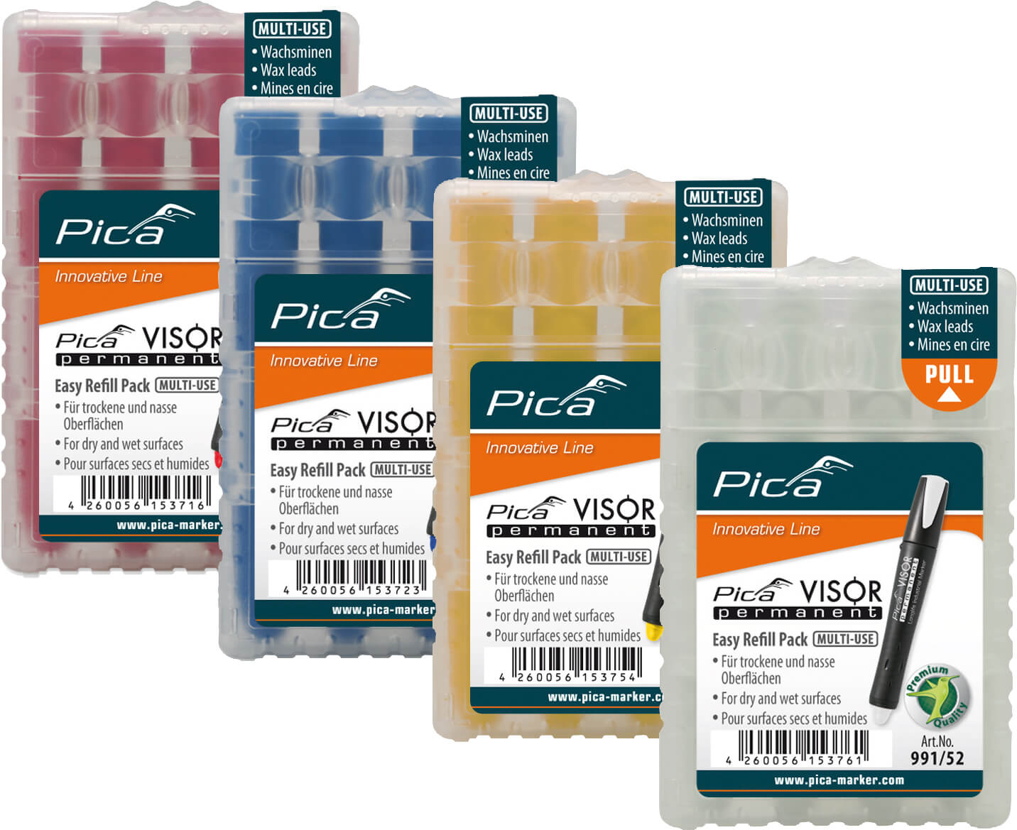 Pica, je 4 Stück VISOR permanent Ersatz-Minen im cleveren "Easy-Refill-Pack" für sekundenschnelles Nachfüllen weiß