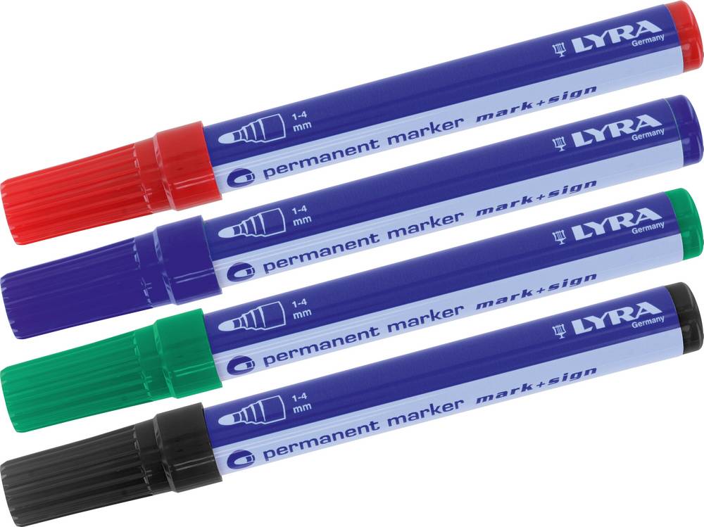 LYRA, wasserfest, bestens geeignet für Markierungen auf allen glatten und porösen Oberflächen, Tinte schnell trocknend und schwer entfernbar, frei von Xylol und Toluol, Kegelspitze, 1-4 mm blau