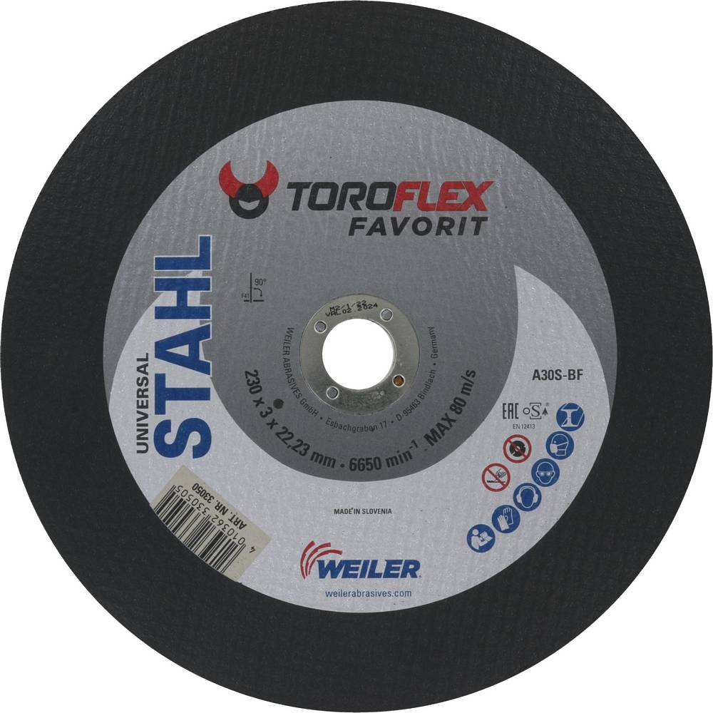 toroflex, Universalscheibe für die Metallbearbeitung, gewebeverstärkt, Innen-ø 22,2 mm, 115 mm / 125 mm gekröpft, 178 mm / 230 mm flach ø 115 x 2,5 mm